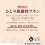 【ひとり旅優待プラン・2名1室料金のお得なプラン 1/4~3/31まで】全客室源泉かけ流し100%温泉付き客室~基本プラン